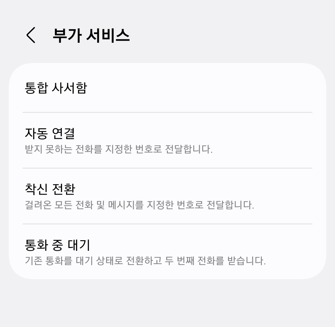 다음 부가 서비스 항목을 선택한 뒤 '통화 중 대기'를 켜거나 끌 수 있습니다.